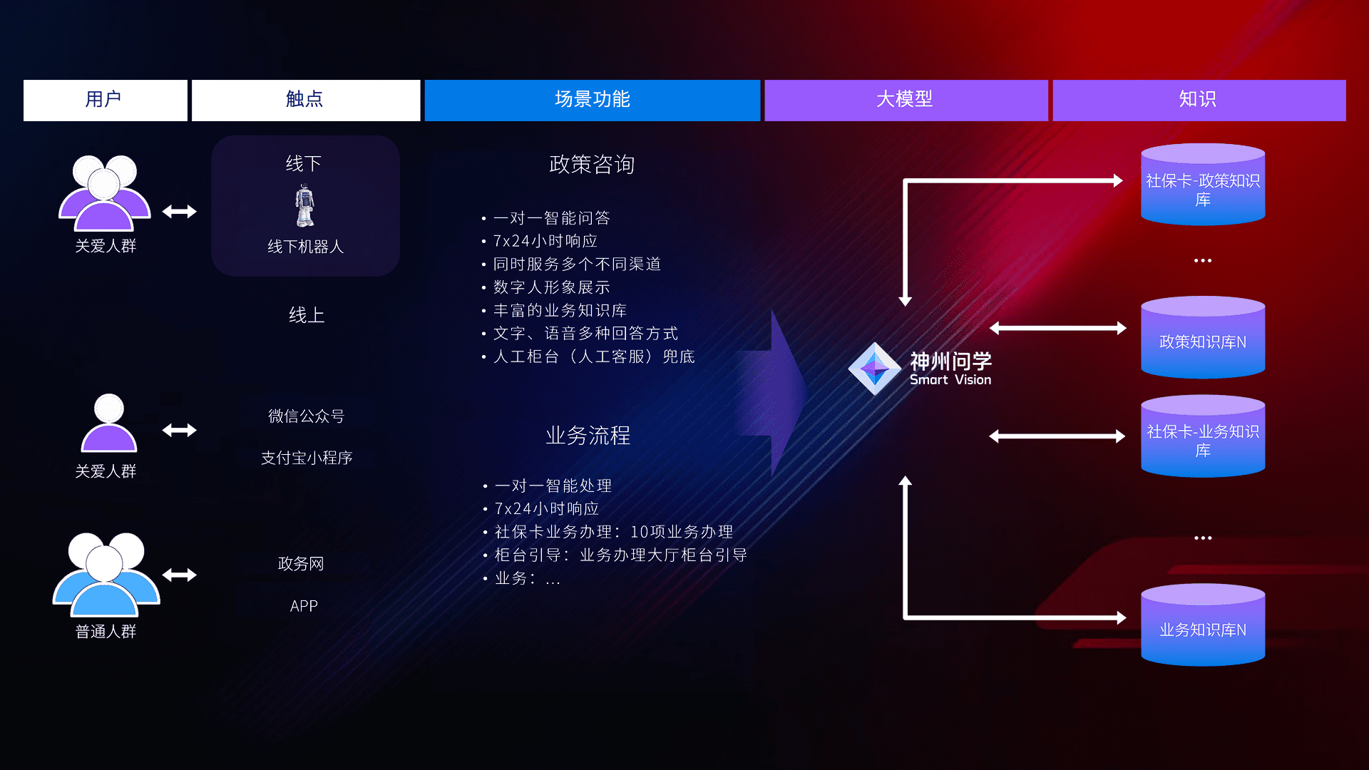 • 线上线下全覆盖:线上提供微信公众号、、、、支付宝小程序、、政务网、、app多种渠道,,,与线下机器人形成完整服务体系。。